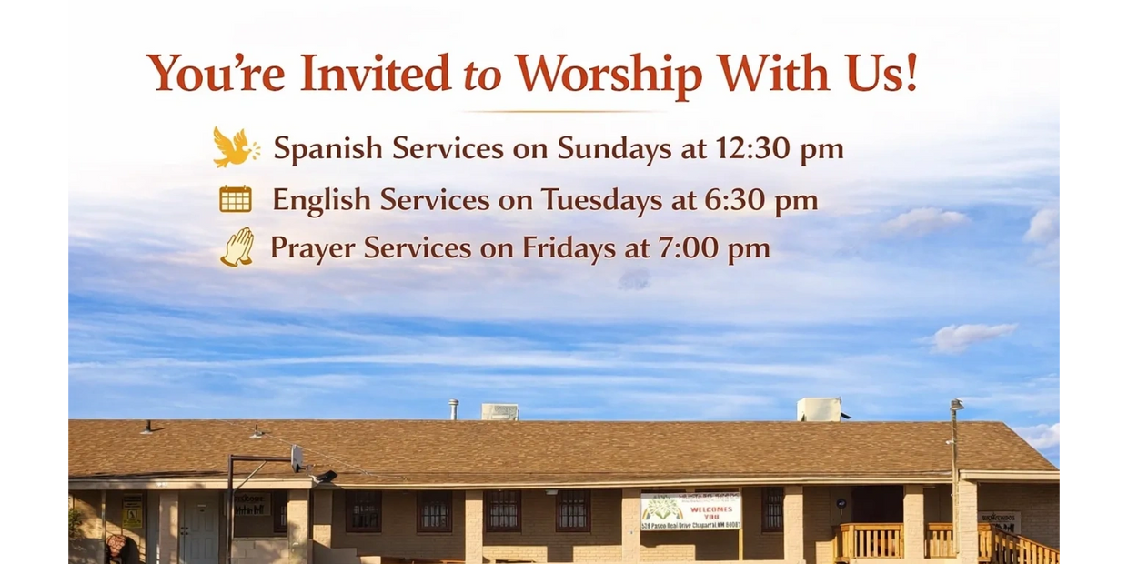 Located at 528 Paseo Real Drive, Chaparral, NM 88081, we offer Praise & Worship services, home and hospital visits, weddings, funeral services, and marriage and family education by appointment.